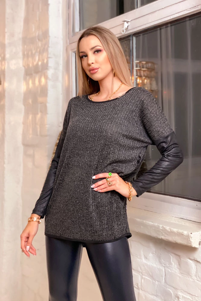 Laza szabású,ejtettvállú tunika, hosszú ujjakkal.