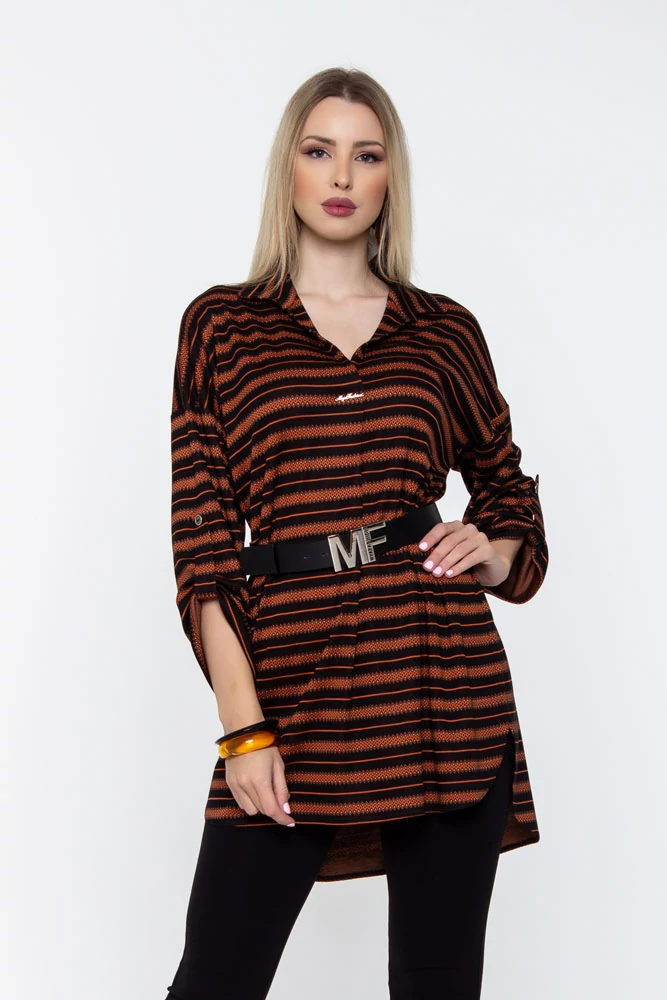 Lezser fazonú, galléros, hosszított tunika. Anyagösszetétel: 95% poliamid, 5% elasztán |