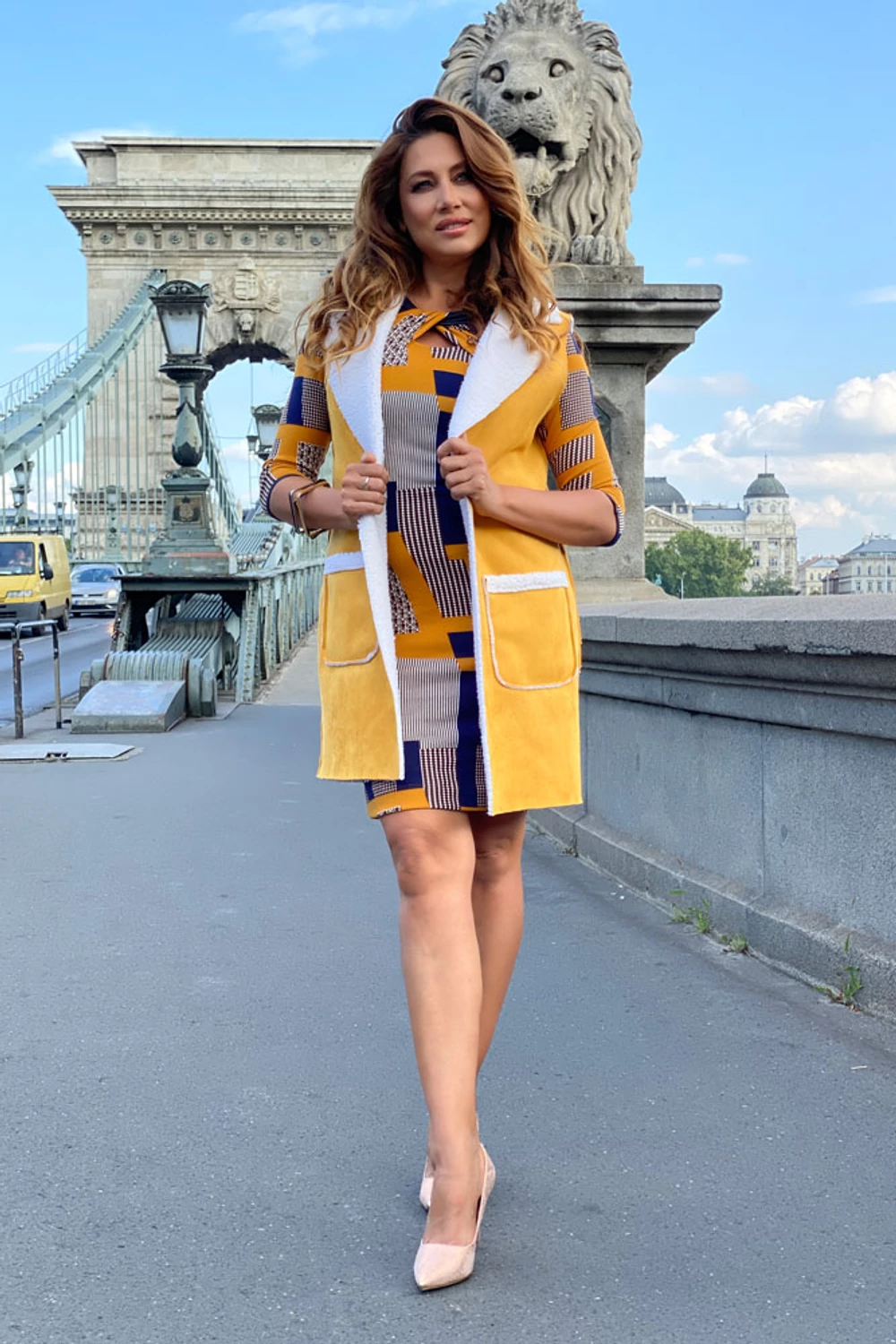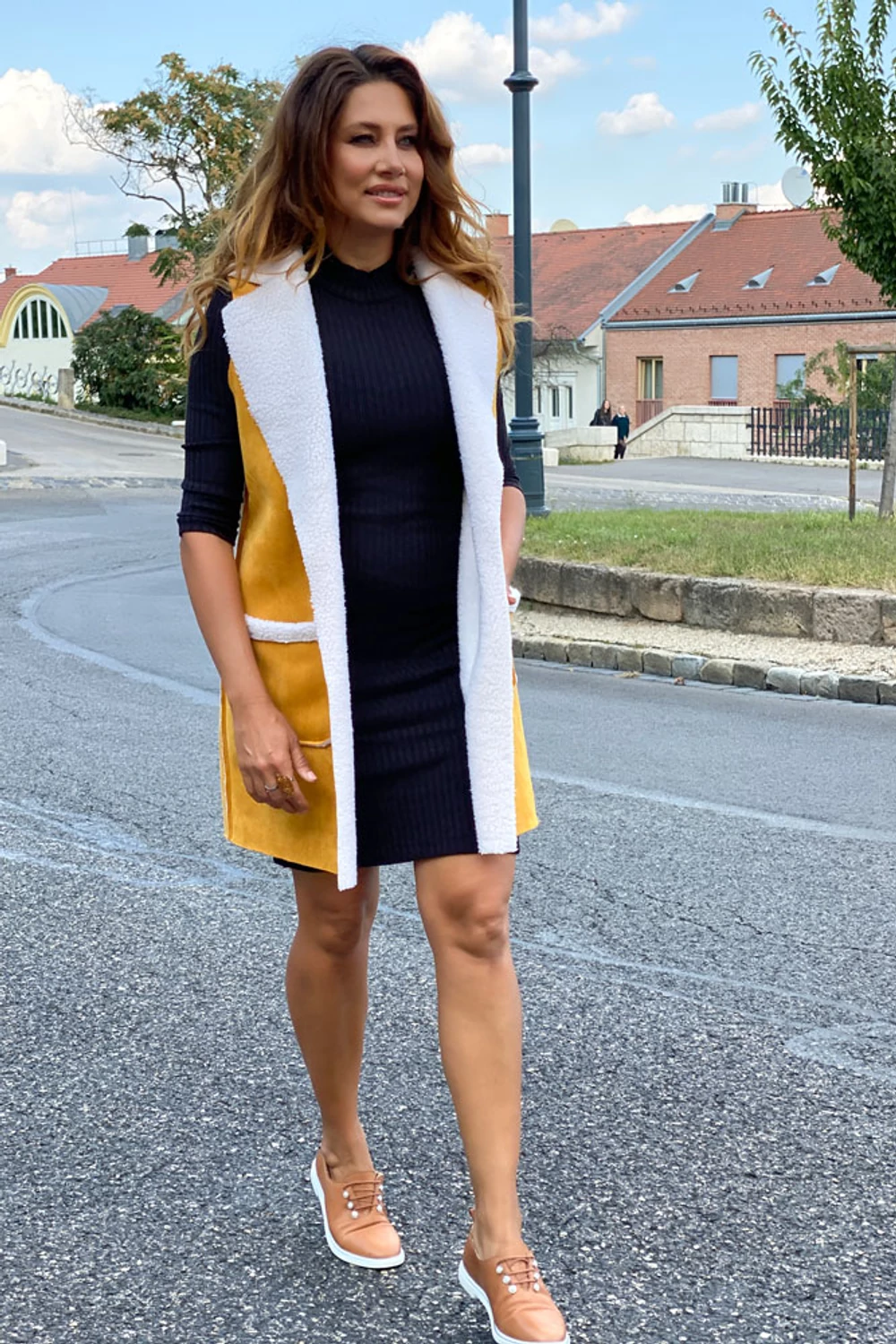 Frida mellény - Sáfrány sárga/fehér szőr