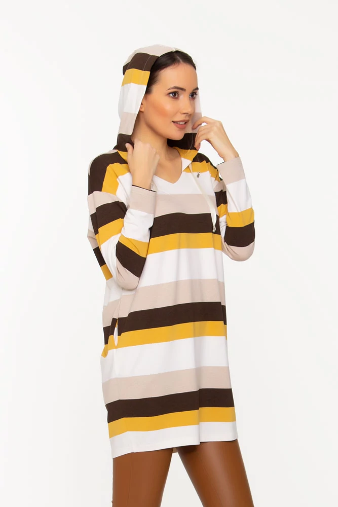 Milla kapucnis tunika - barna/mustár/bézs/fehér csíkos
