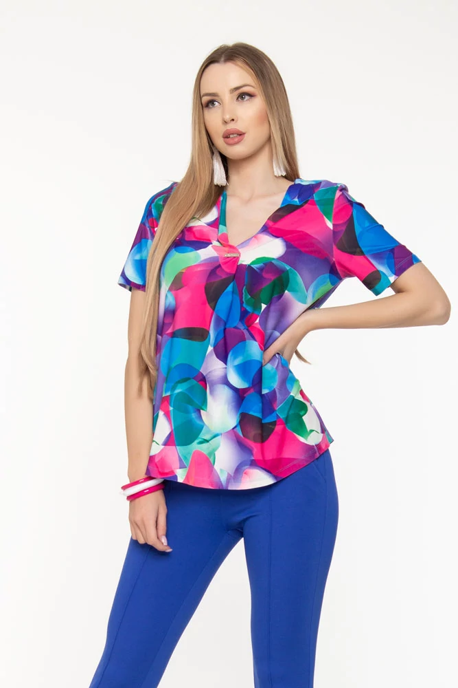 Laza szabású tunika, rövid laza ujjakkal, "V" nyakkivágással. Anyagösszetétel: 95% poliészter, 5% elasztán |
