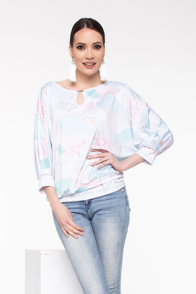 Denevérujjú, laza szabású felső, 3/4-es ujjakkal. Anyagösszetétel: 95% poliészter, 5% elasztán |